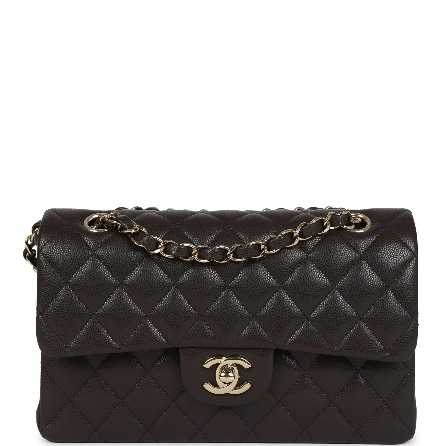 Chanel Small Classic Double Flap Bag Brown Shiny Caviar Light Gold Hardware