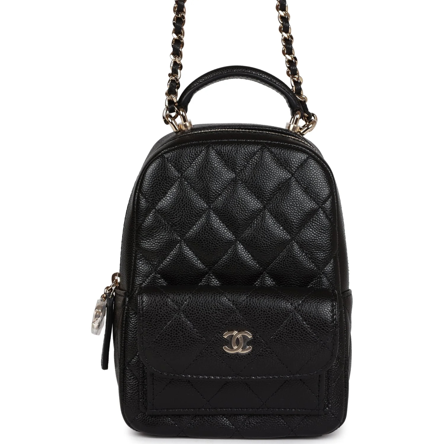Chanel Mini Phone Holder Backpack Black Caviar Light Gold Hardware