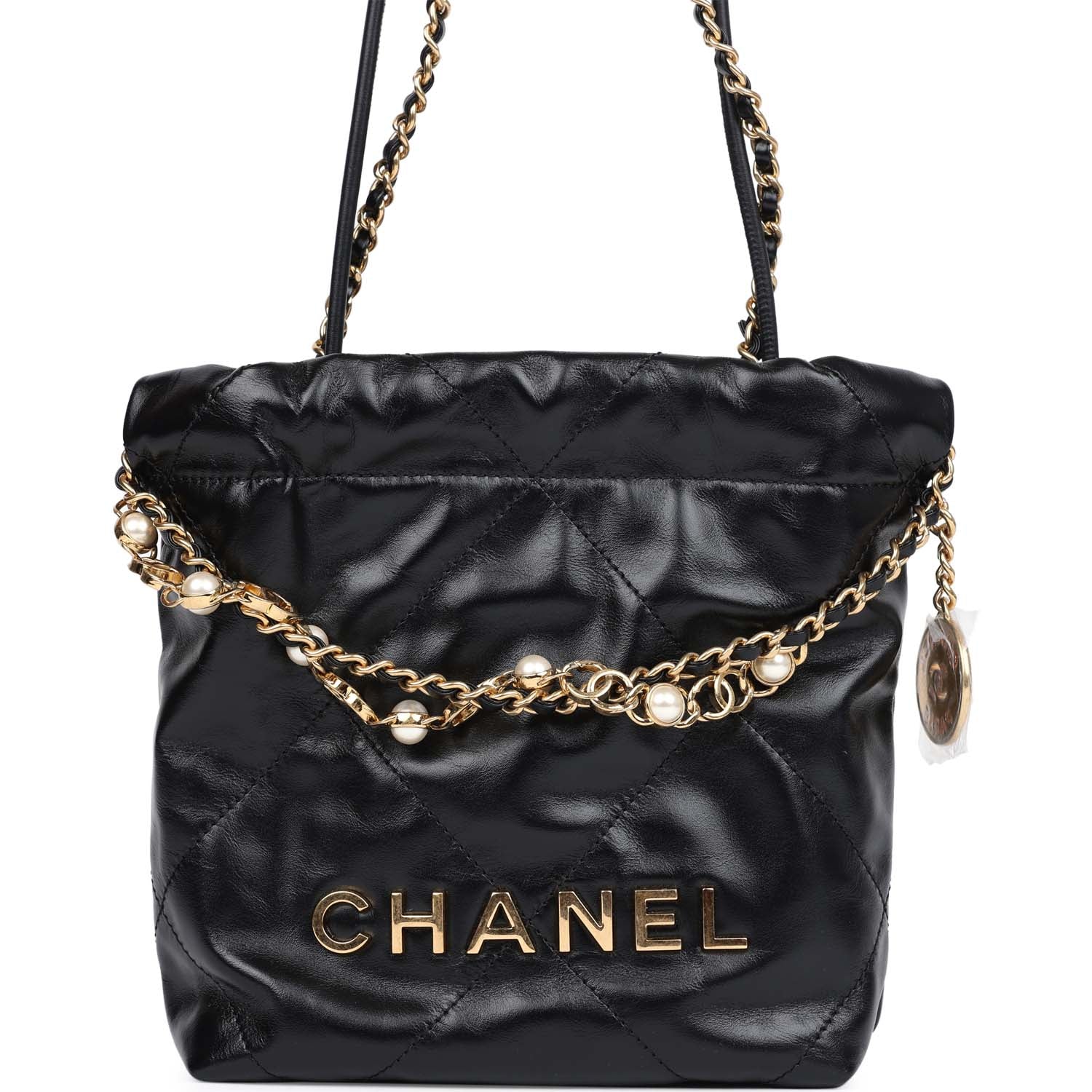 Chanel Mini 22 Bag Black Calfskin Pearls & Gold Hardware