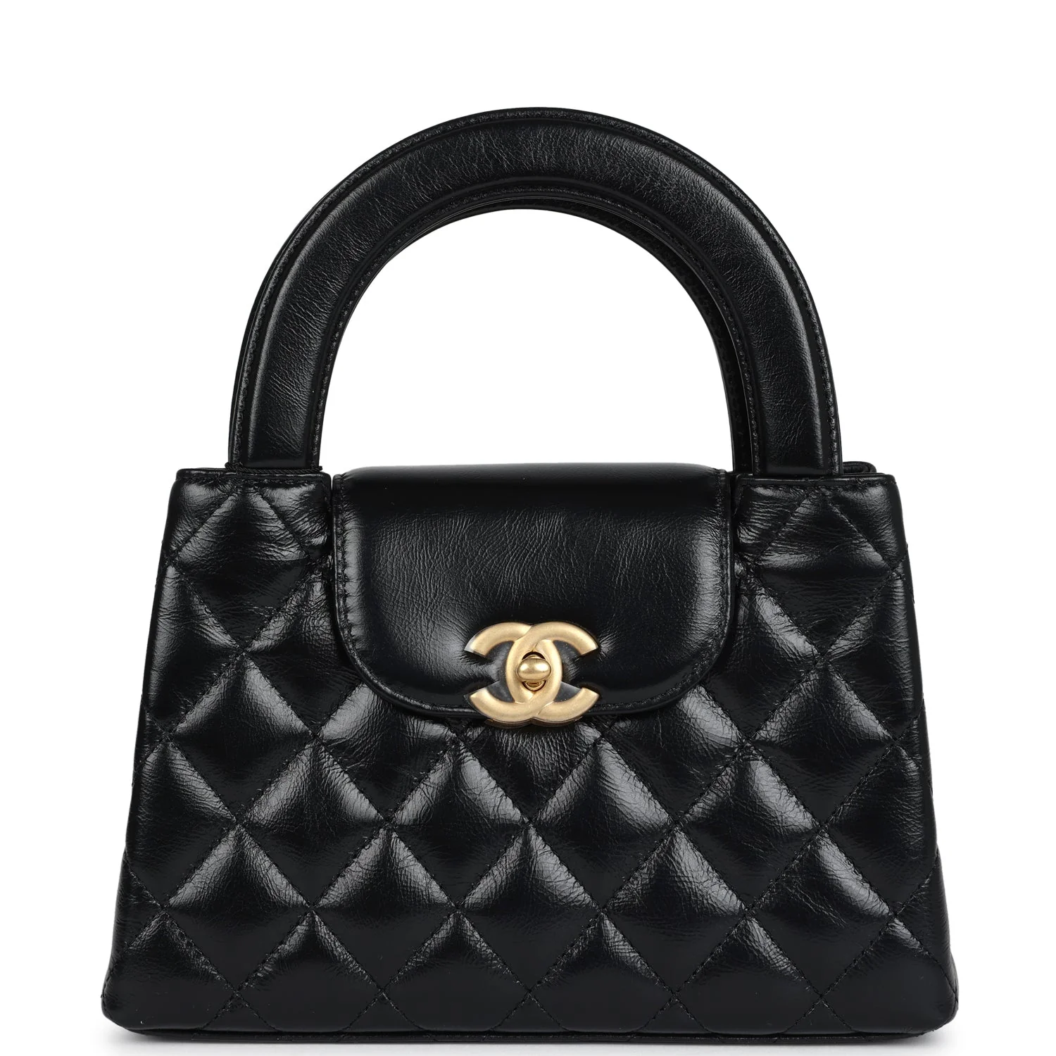 Chanel Small Kelly Shopper Black Shiny Aged Calfskin Brushed Gold Hardware