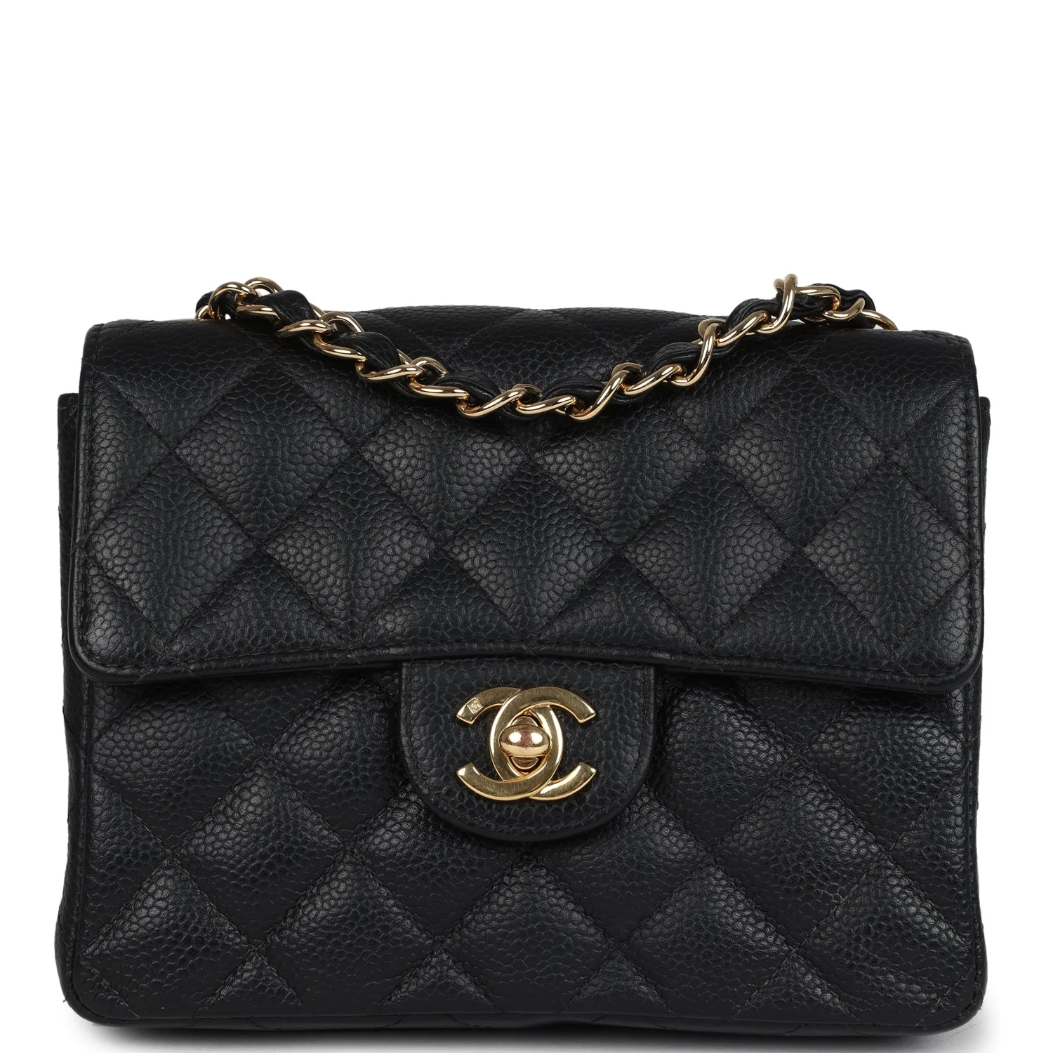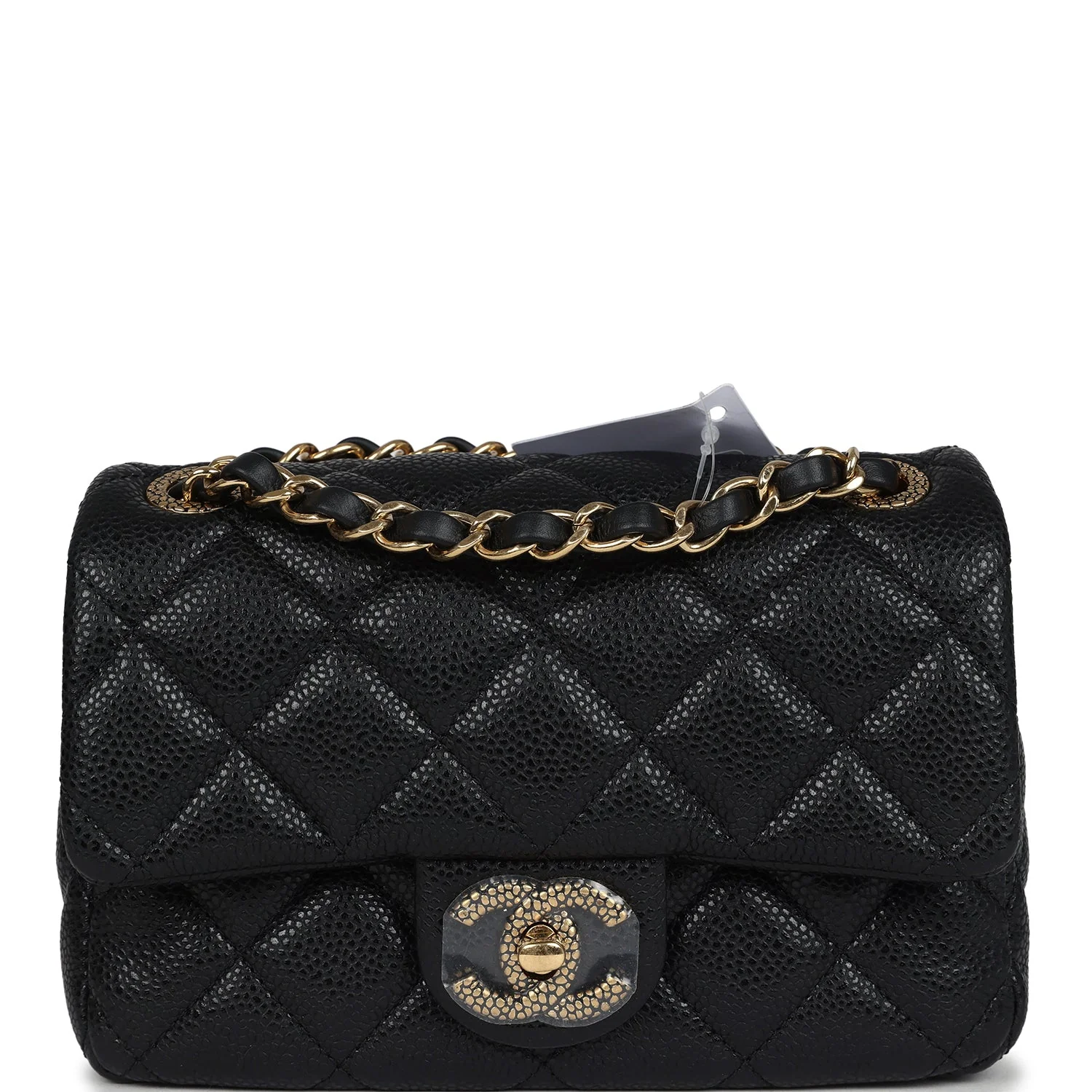 Chanel Mini Rectangular Flap Bag Black Shiny Caviar Gold Hardware