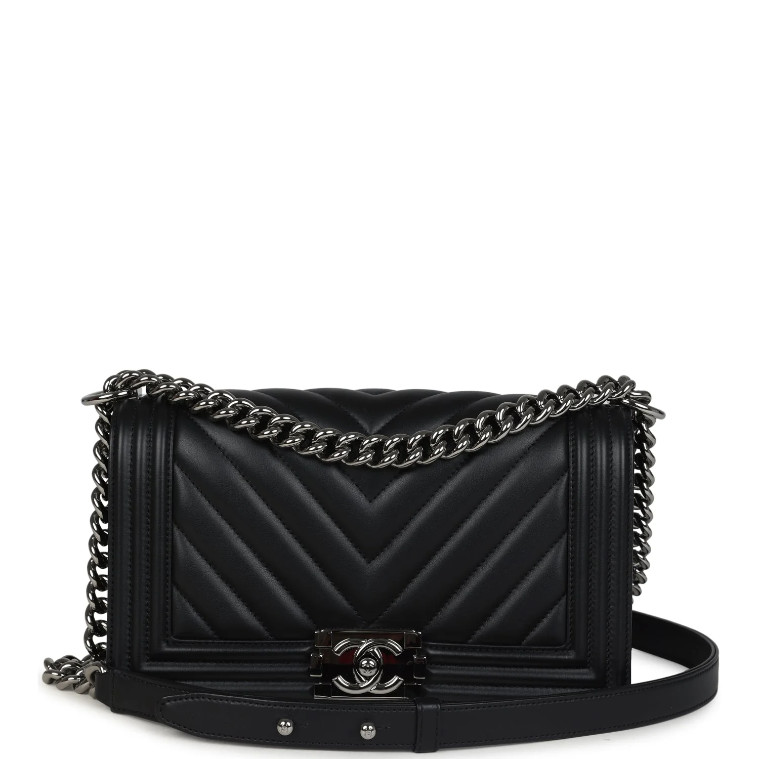 Chanel Medium Chevron Boy Bag Black Lambskin Ruthenium Hardware