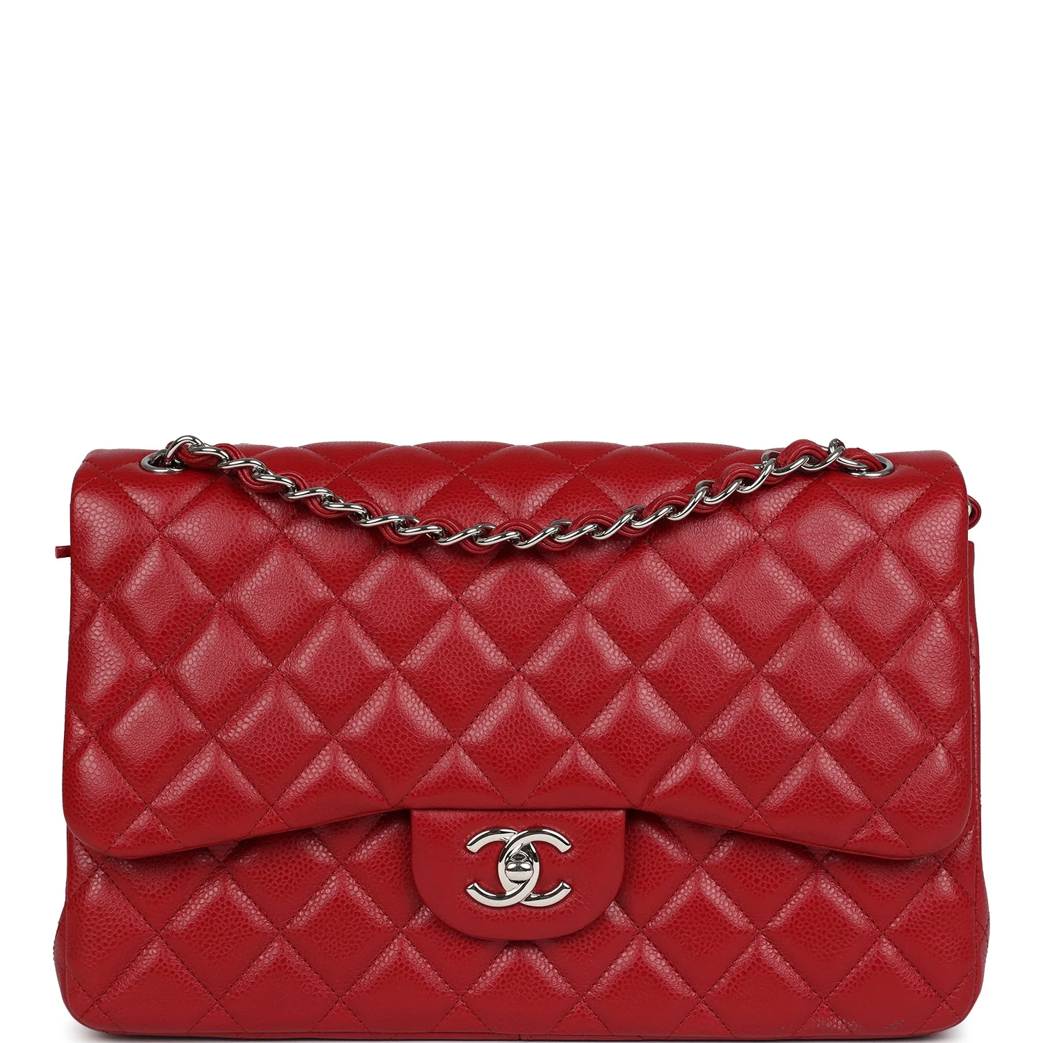 Chanel Jumbo Classic Double Flap Red Caviar Silver Hardware