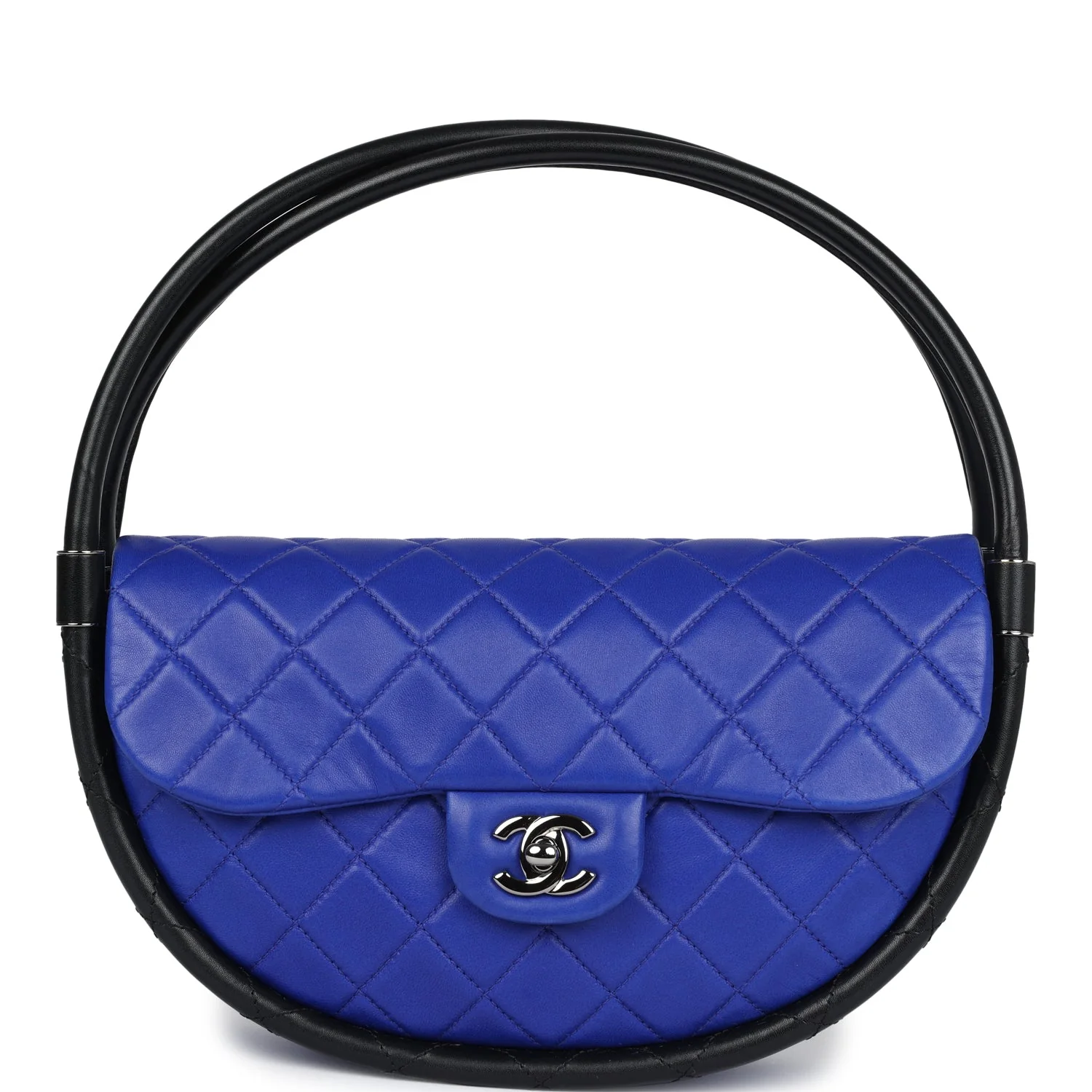 Chanel Small Hula Hoop Bag Dark Blue and Black Lambskin Ruthenium Hardware