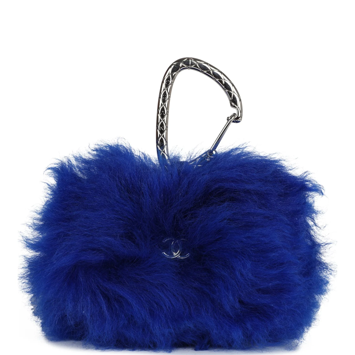 Chanel Mini Clutch Bag Dark Blue Shearling Silver Hardware