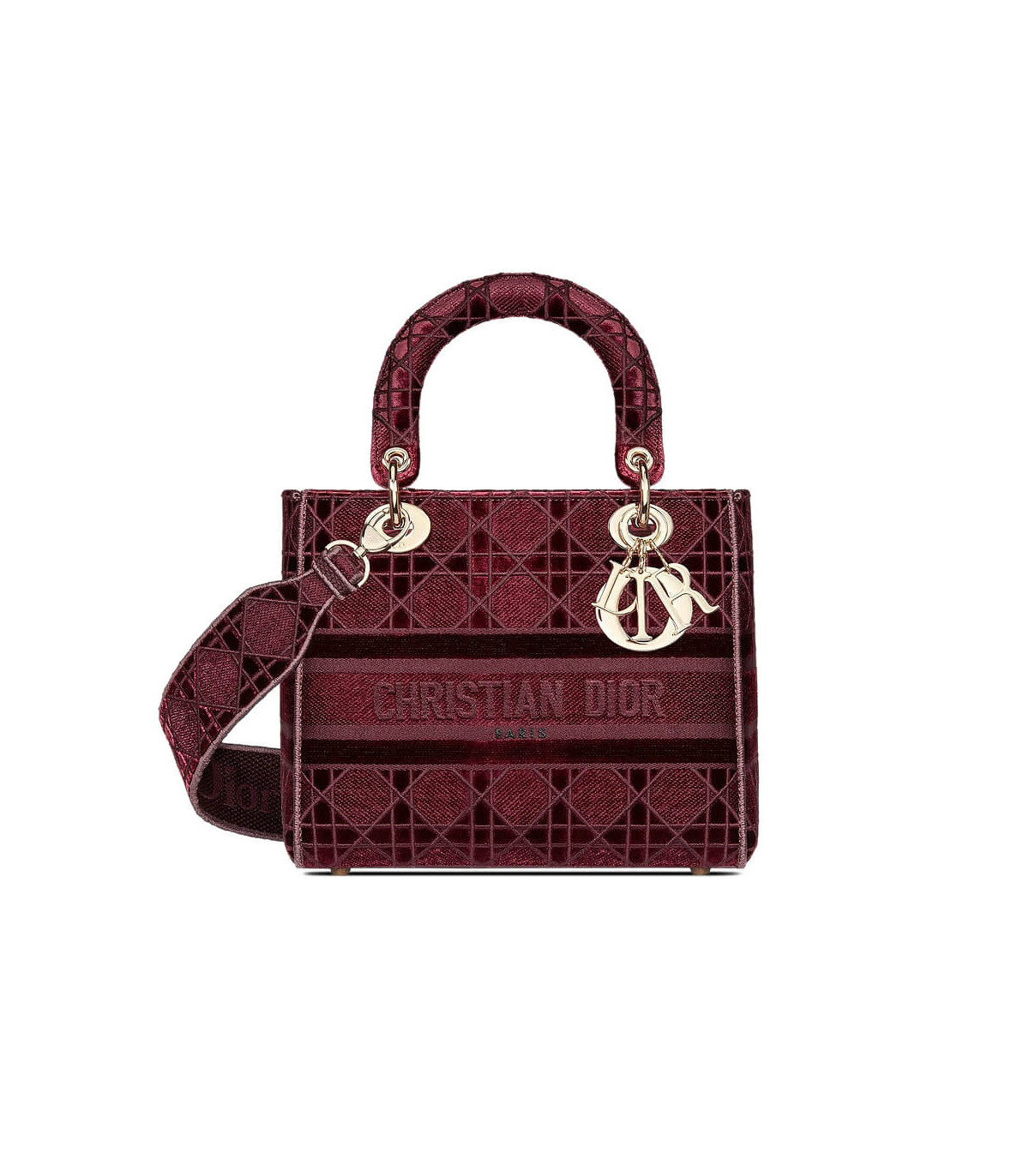 Dior Dior Medium Lady D-Lite Bag Burgundy Cannage Embroidered Velvet