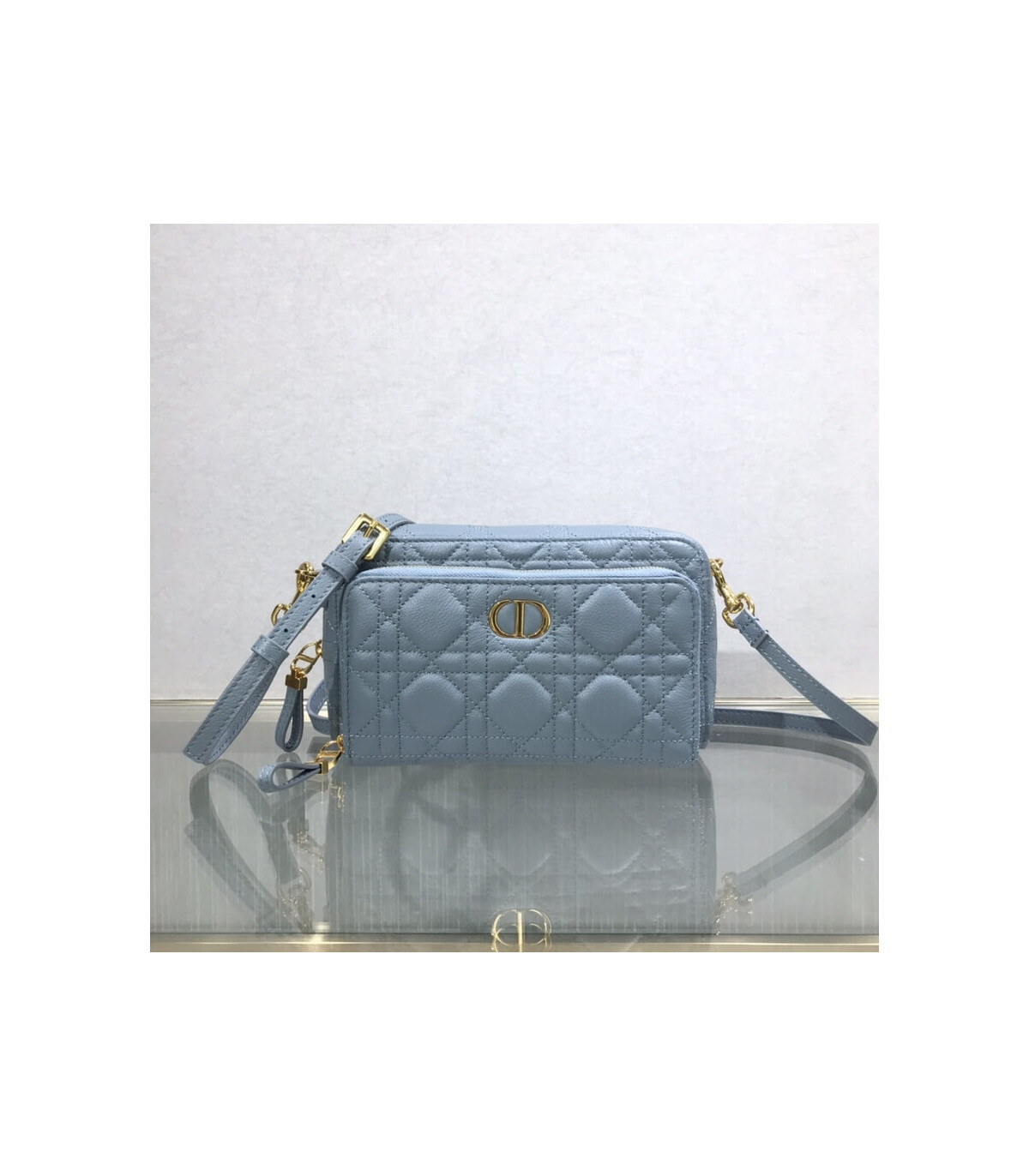Dior Dior Caro Double Pouch Cloud Blue Supple Cannage Calfskin