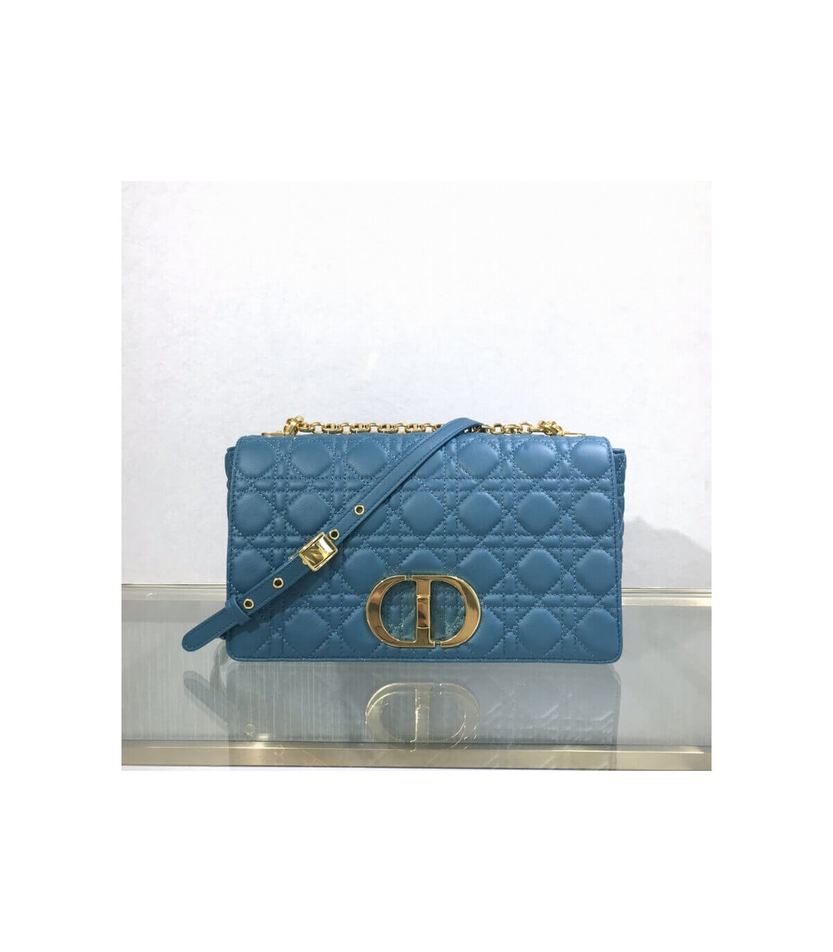 Dior Dior Large Caro Bag Ocean Blue Supple Cannage Calfskin