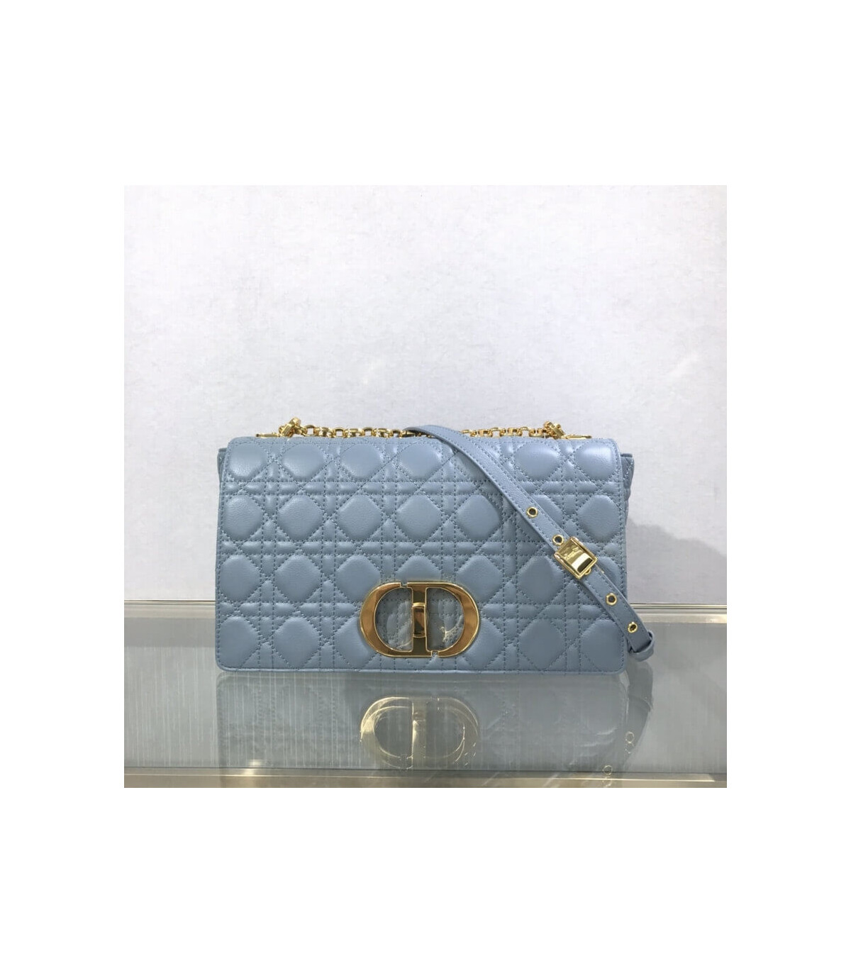 Dior Dior Large Caro Bag Cloud Blue Supple Cannage Calfskin