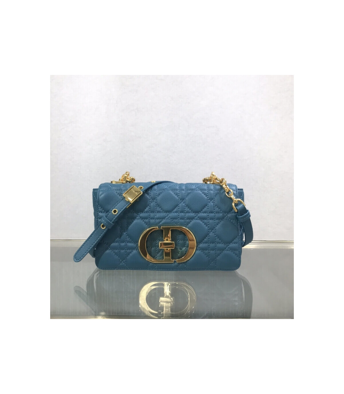 Dior Dior Small Caro Bag Ocean Blue Supple Cannage Calfskin