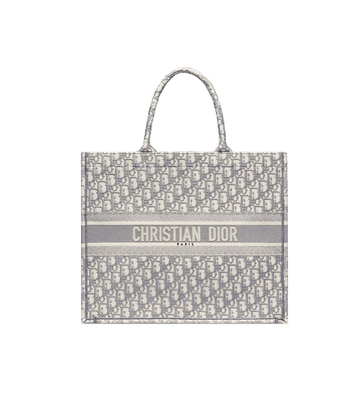 Dior Dior Small Book Tote Grey Oblique Embroidery
