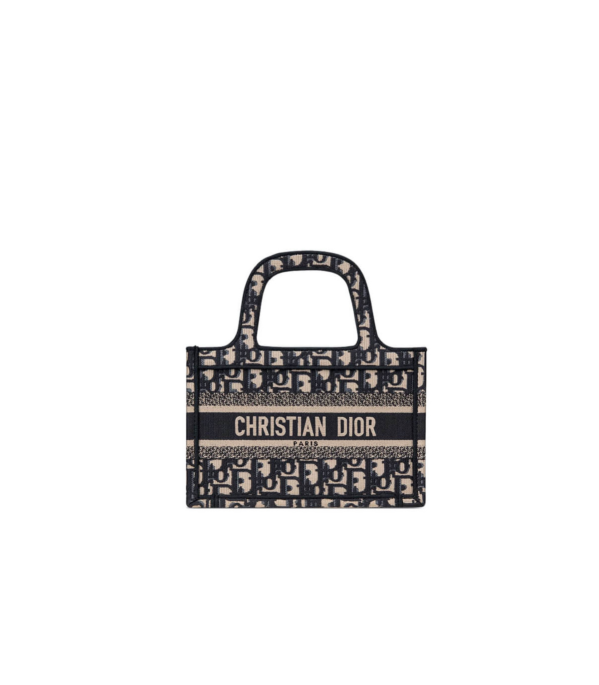 Dior Dior Mini Book Tote Blue Oblique Embroidery