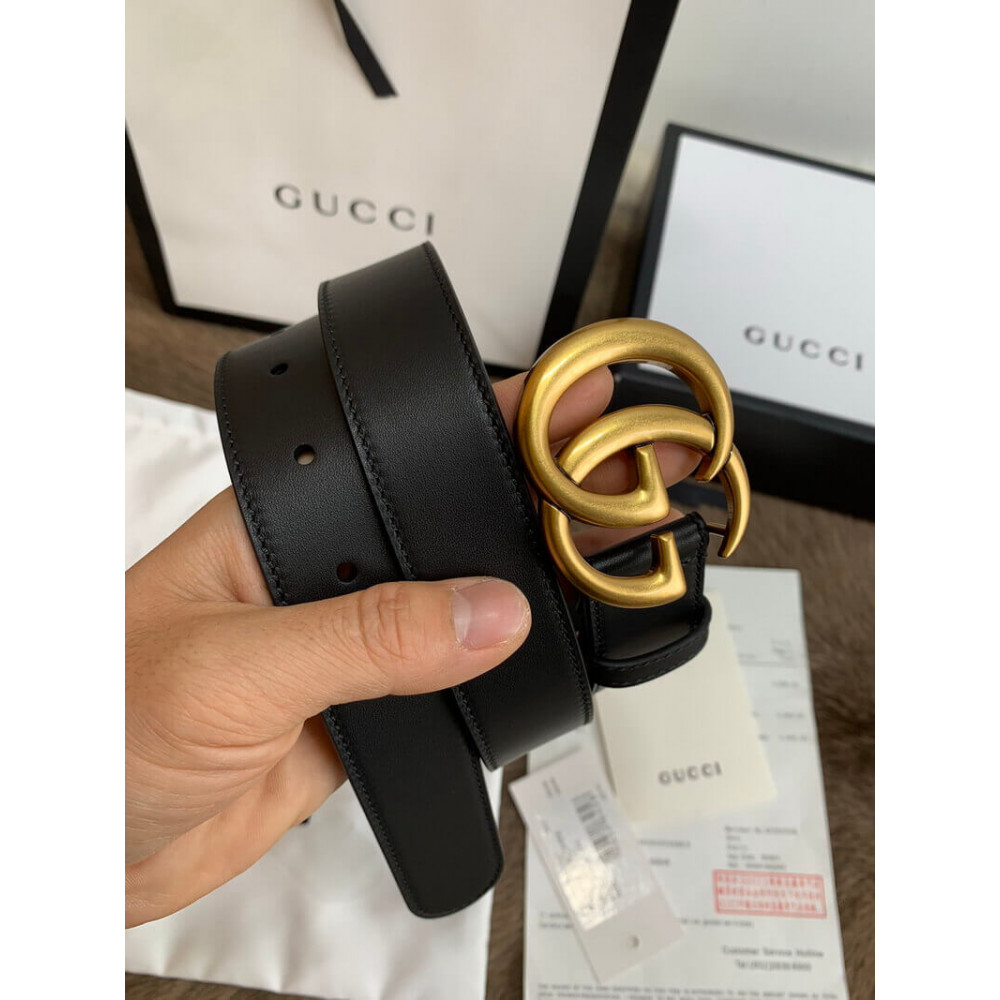 Gucci Black Leather 30mm Belt With Double G Buckle