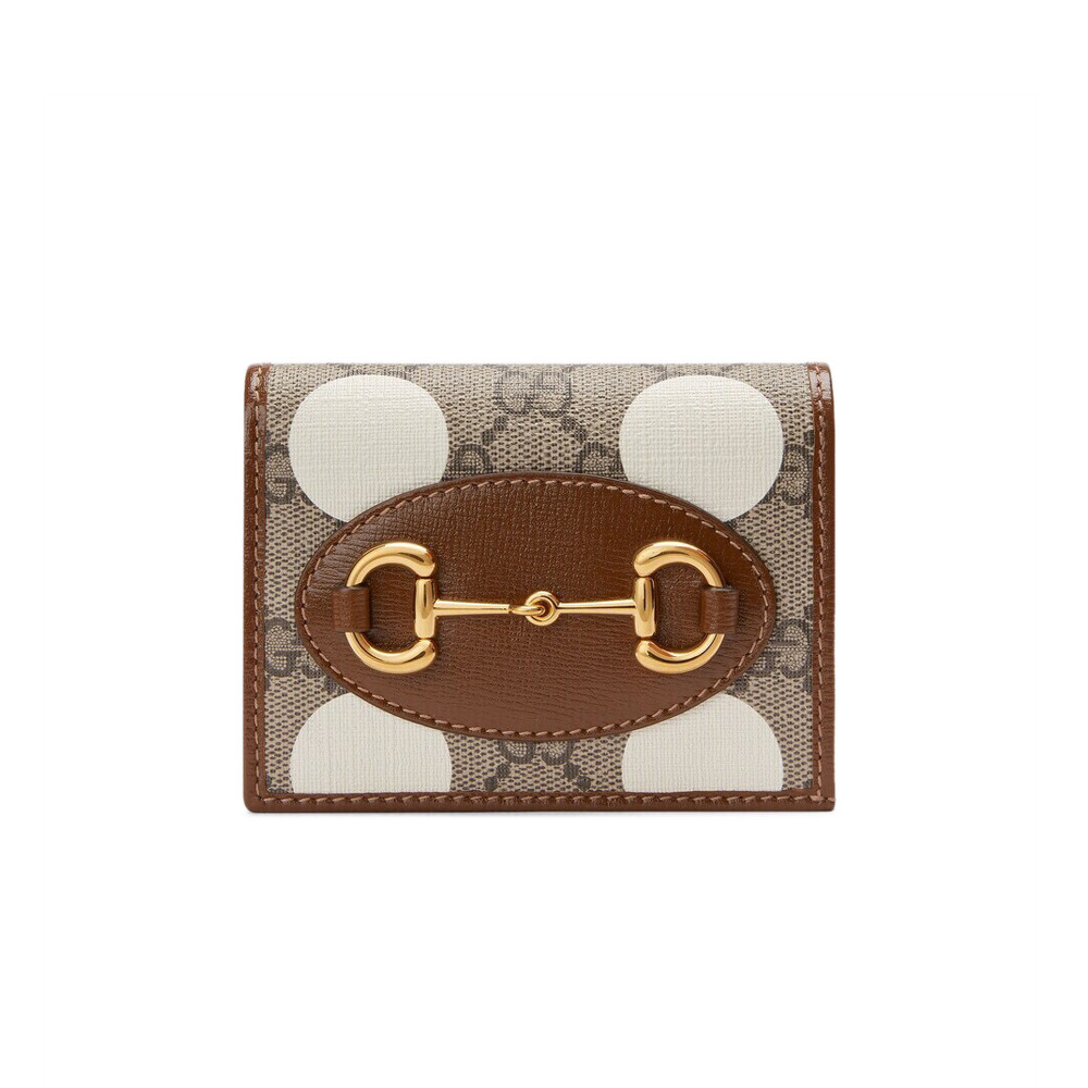 Gucci Horsebit 1955 Card Case Wallet With Polka Dot Print