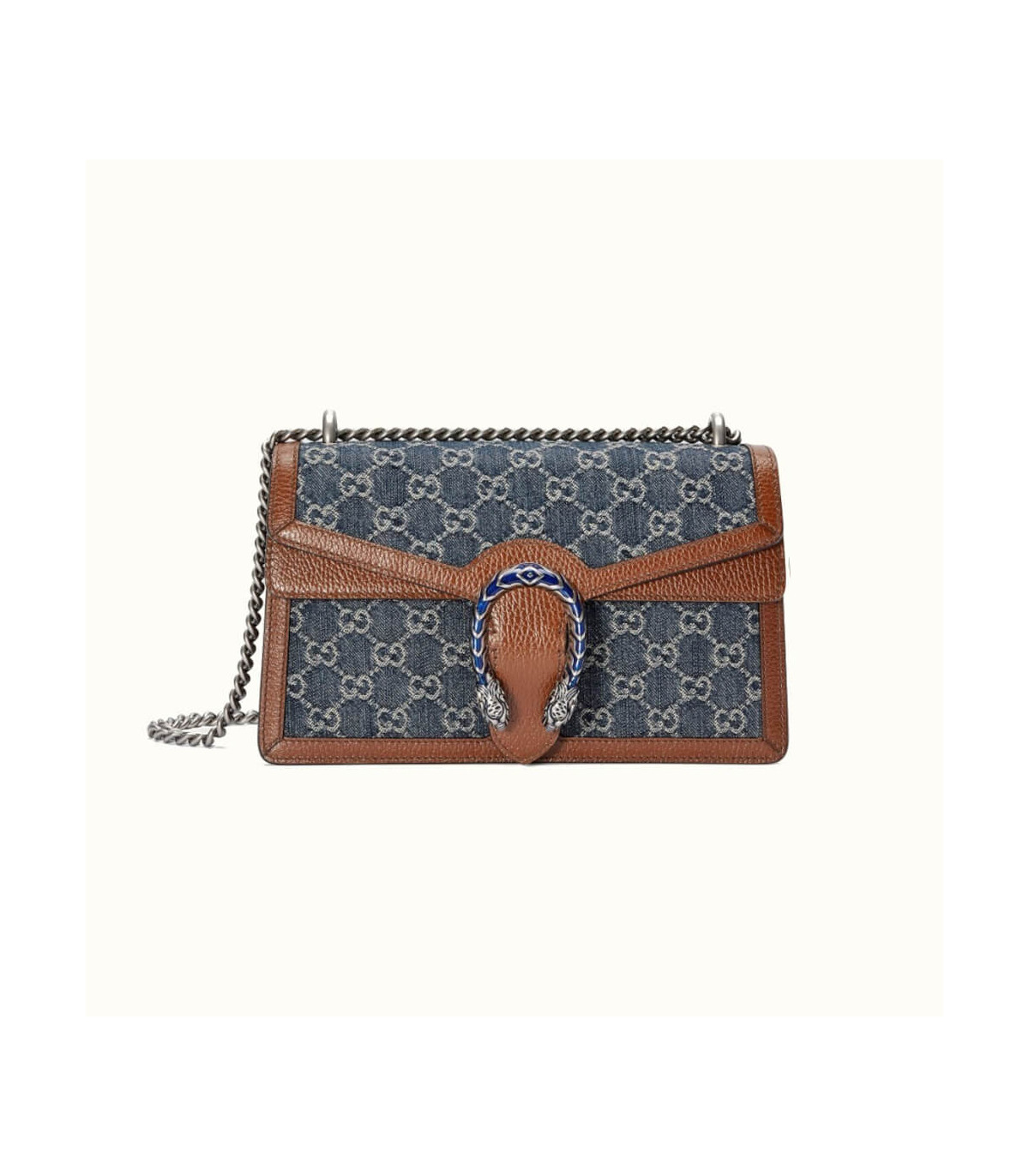 Gucci Small Dionysus Shoulder Bag in Blue Jacquard Denim