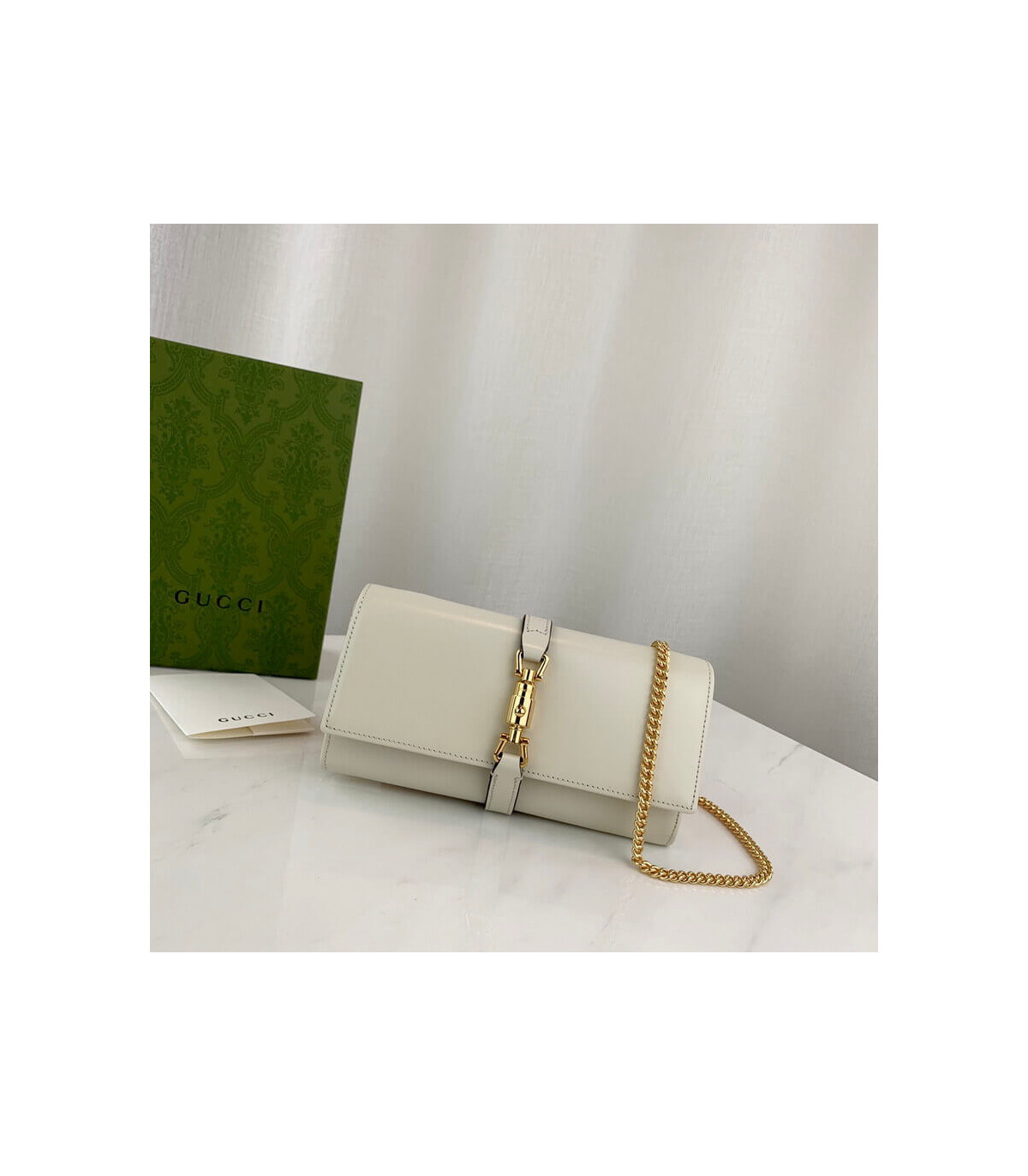 Gucci Jackie 1961 White Calfskin Chain Wallet