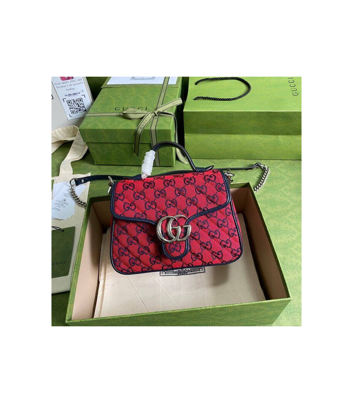 Gucci GG Marmont Multicolour Mini Top Handle Bag Red