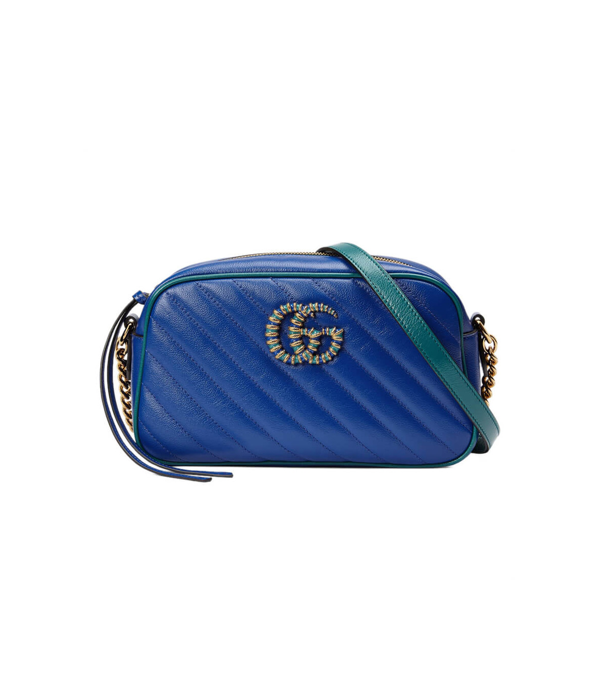 Gucci GG Marmont Small Shoulder Bag Blue and Emerald Leather