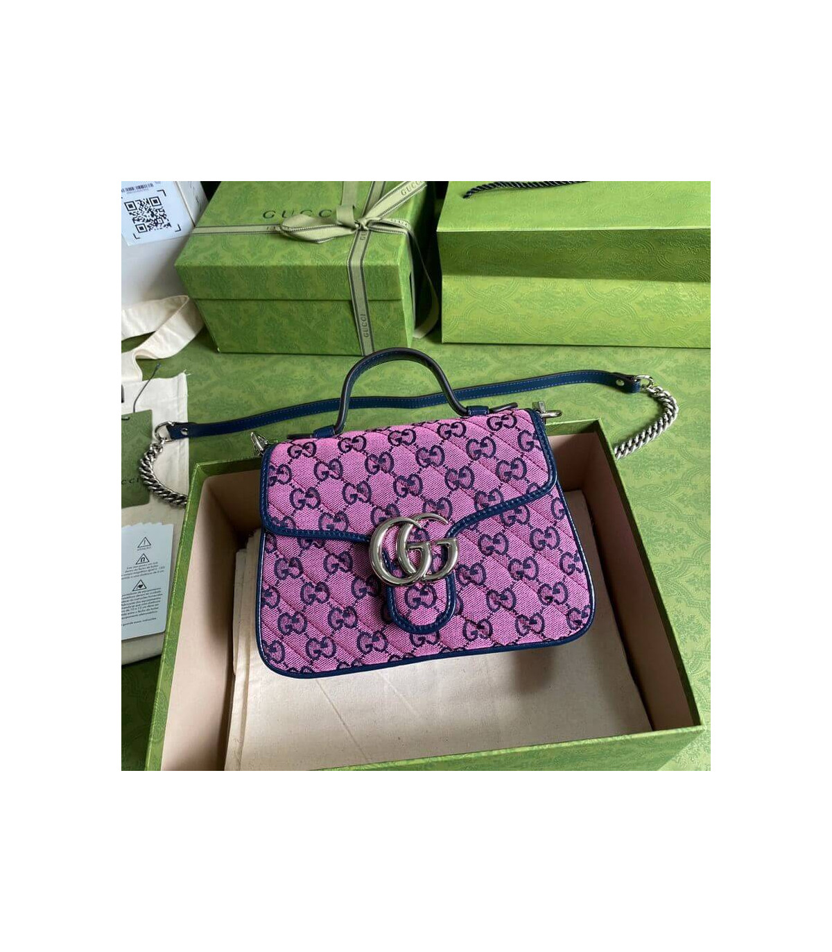 Gucci GG Marmont Multicolour Mini Top Handle Bag Pink