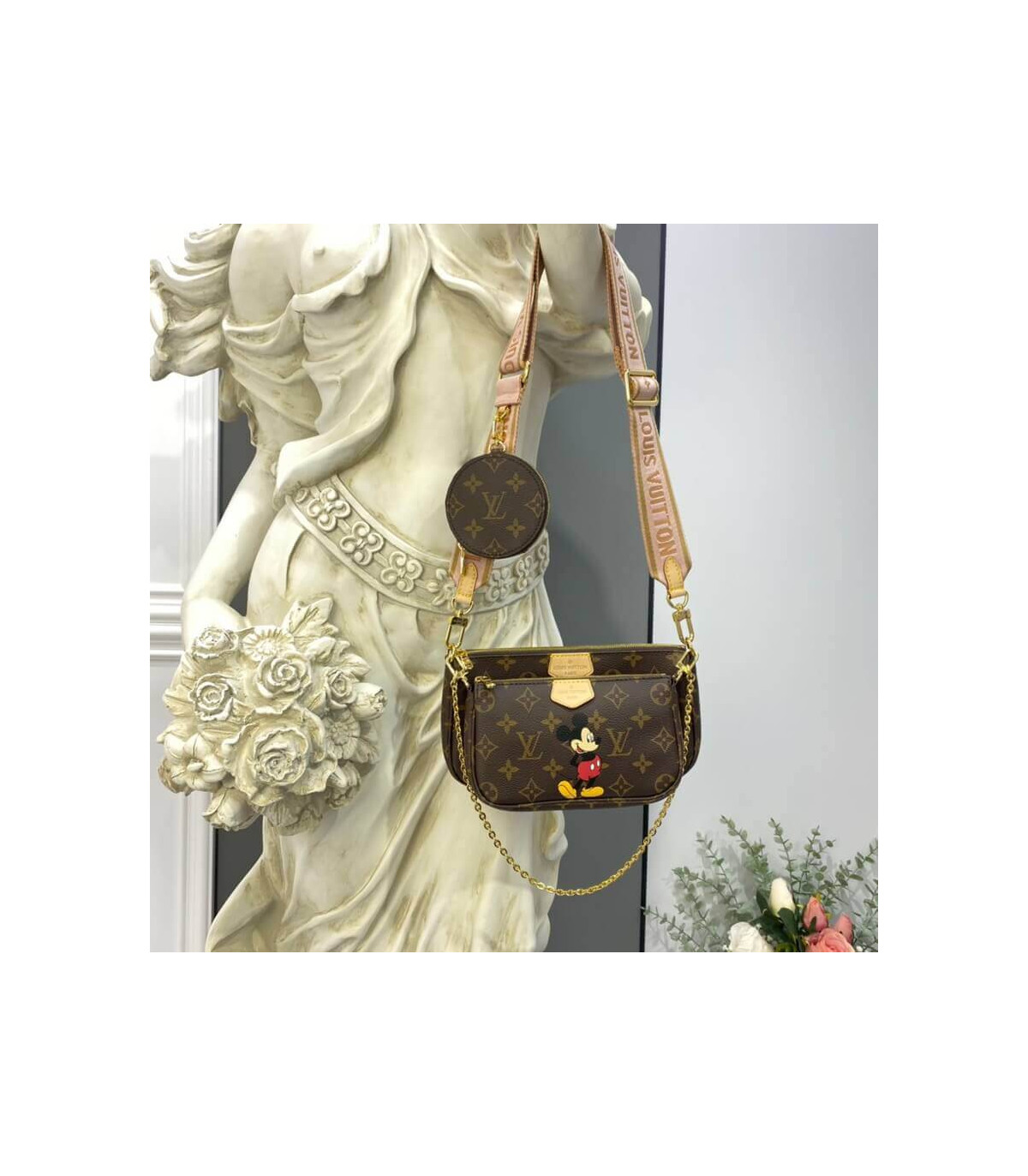 Louis Vuitton Multi Pochette Accessoires With Mickey Mouse Print Bag 3in1 Pink